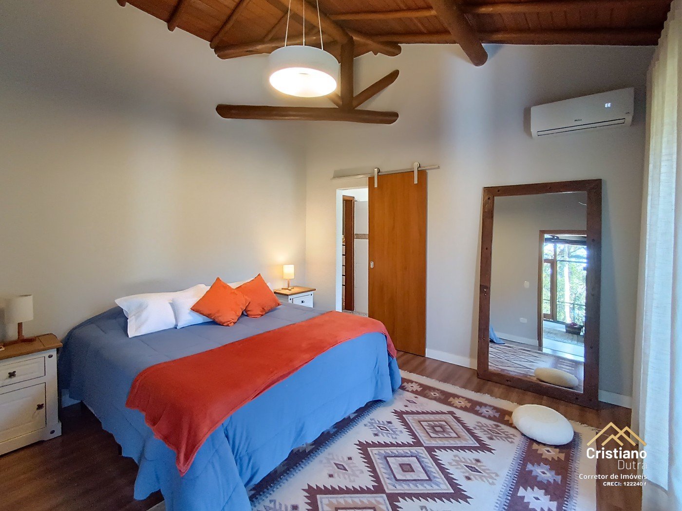 Com 265,23 m² de área construída sobre um terreno de 2.304 m², o projeto privilegia a integração com a paisagem e a amplitude dos ambientes. São 3 dormitórios, incluindo uma suíte com closet e hidromassagem, ideal para momentos de descanso e privacidade.