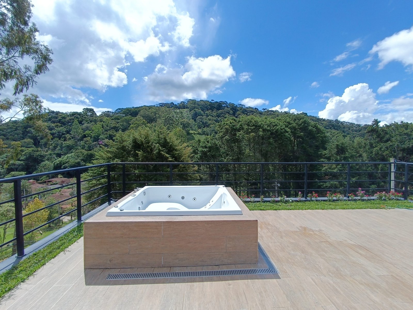 Jacuzzi 7 lugares no deck, em meio a natureza exuberante.